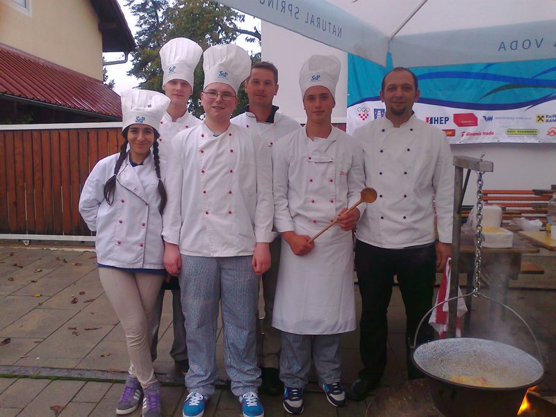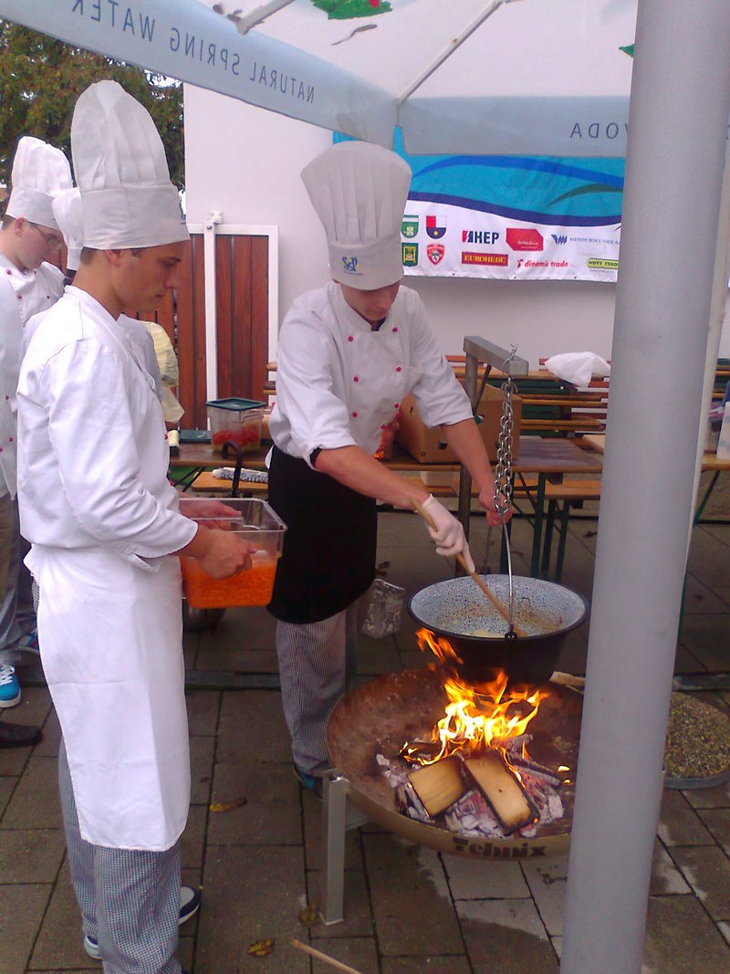 Iako kiša iritantno i neumorno tjera ljeto i uporno glumi jesen, u Prelogu je ovog vikenda nesmetano zavladao pravi kozmopolitski štih. Za to su zaslužni natjecatelji Svjetskog prvenstva u lovu ribe udicom na plovak, koji su stigli iz 36 zemalja svijeta. Prilikom svečanog otvorenja Prvenstva, u organizaciji gastronomske ponude vrijedne svjetskih šampiona, nezaobilazno je sudjelovala i naša škola. Učenici 3.KU razreda, Adrijana Lepen, Ivan Vurušić, Kruno Mađarić i Jurica Blažić sa stručnim učiteljima Krunoslavom Tilošancem i Vladom Bogomolcem za natjecatelje i publiku pripremali su gulaš. Dragi susjedi Mađari, bez uvrede, ali naš gulaš je - naš gulaš
