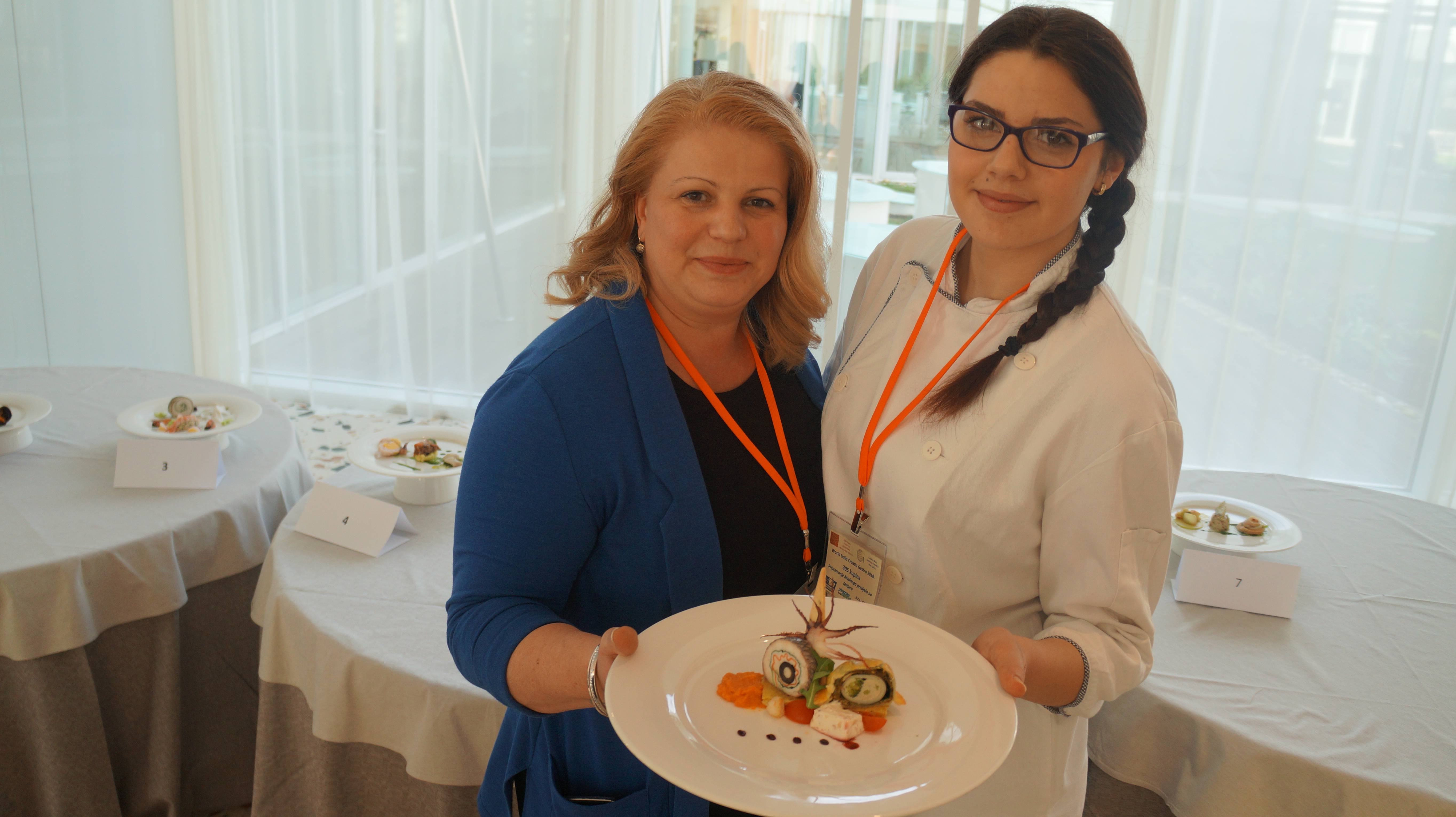 Maturantica hotelijerka Dajana Kodrnja osvojila je 8. mjesto u disciplini Pripremanje slatkog izloška na tanjuru. Mentor joj je bio Vlado Turek, stručni učitelj slastičarstva.