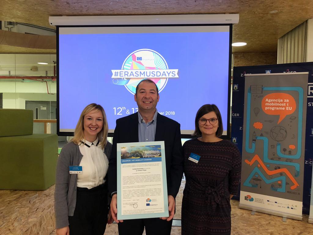 Šećer na kraju ovog radnog tjedna bila je službena dodjela Povelje mobilnosti u petak, 12. listopada 2018. godine koju su primili ravnatelj Tomislav Gregur i koordinatorice Kristina Jančec i Jelena Škoda na Inspiration day u Zagrebačkom inovacijskom centru koji je organizirala AMPEU (Agencija za mobilnosti i programe Europske unije). Ove godine Povelja je bila dodijeljena trima školama, čime se sada u Hrvatskoj može pohvaliti samo svega 8 škola.