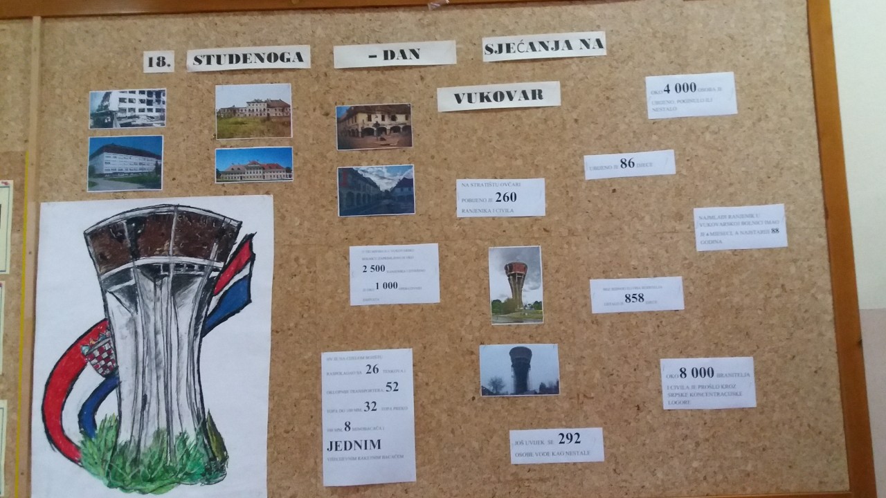 U našoj školi učenici su uredili pano uz stručnu pomoć profesorice T. Štefok, a u poslijepodnevnim satima krenuli u pratnji ostalih nastavnika prema preloškom spomeniku Domovinskom ratu kako bi odali počast i zapalili svijeće.